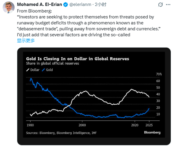 Andromeda Capital Management的Alberto Gallo也表示,随着债务上升和人口老龄化,“货币贬值进程”将会加速,因为政客们更容易接受这种做法,而不是刺激经济增长或实施紧缩政策。他认为各国央行可能会被卷入这场行动。